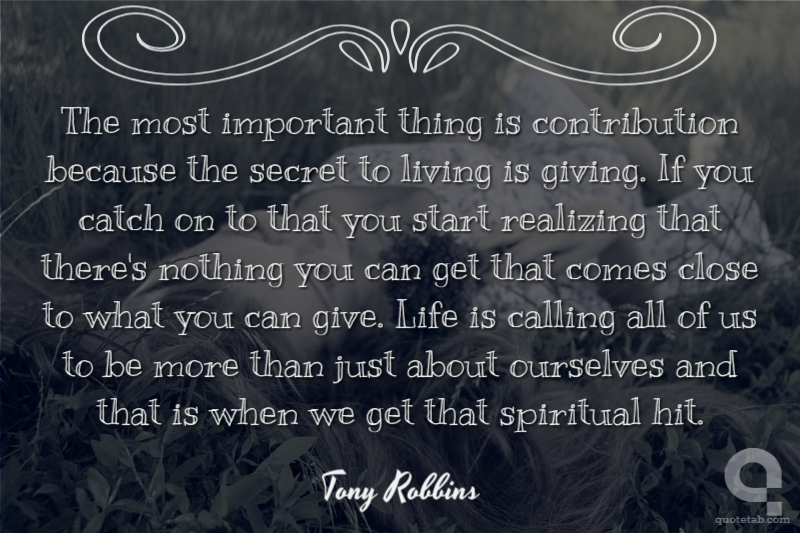 The most important thing is contribution because the secret to living is giving. If you catch on to that you start realizing that there's nothing you can get that comes close to what you can give. Life is calling all of us to be more than just about ourselves and that is when we get that spiritual hit.