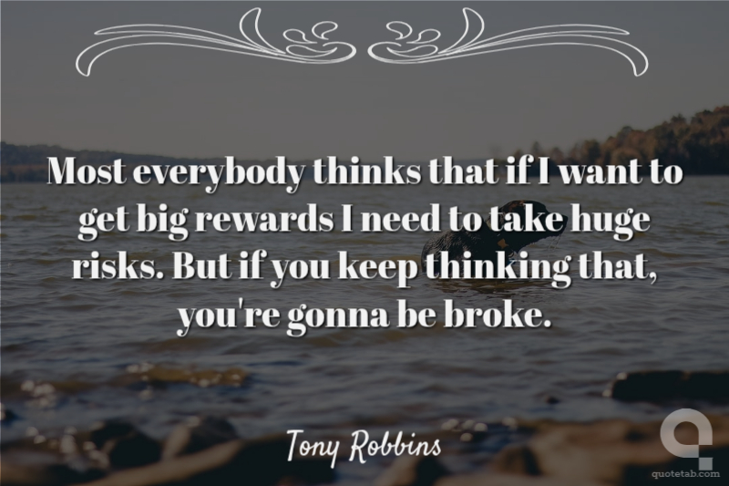Most everybody thinks that if I want to get big rewards I need to take huge risks. But if you keep thinking that, you're gonna be broke.