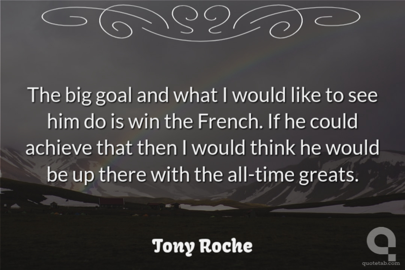 The big goal and what I would like to see him do is win the French. If he could achieve that then I would think he would be up there with the all-time greats.