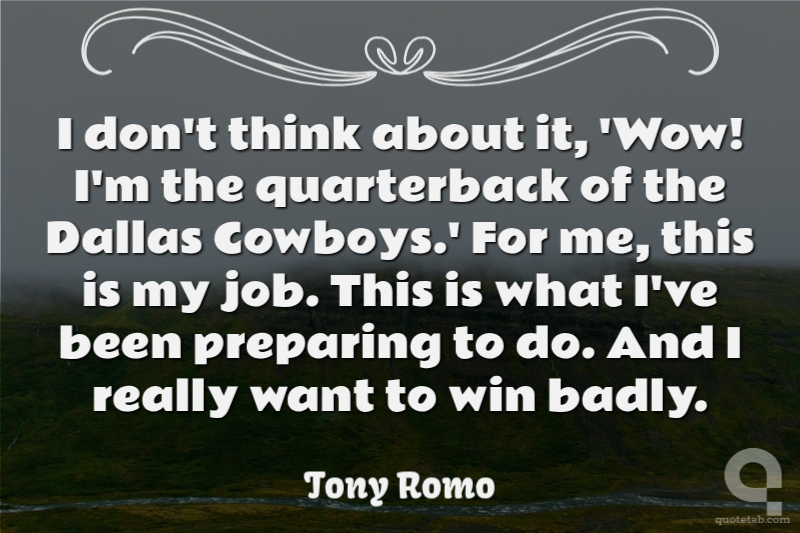 I don't think about it, 'Wow! I'm the quarterback of the Dallas Cowboys.' For me, this is my job. This is what I've been preparing to do. And I really want to win badly.