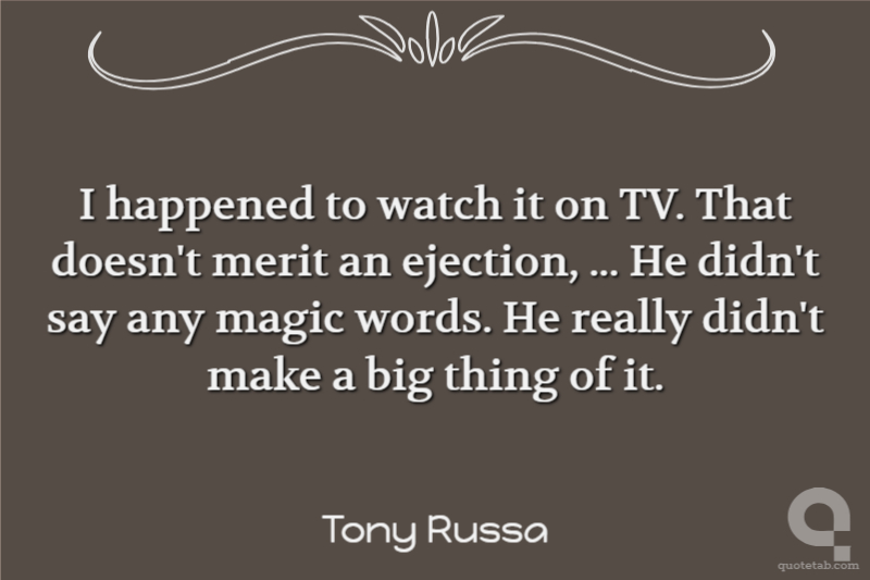I happened to watch it on TV. That doesn't merit an ejection, ... He didn't say any magic words. He really didn't make a big thing of it.