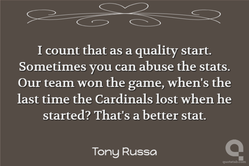 I count that as a quality start. Sometimes you can abuse the stats. Our team won the game, when's the last time the Cardinals lost when he started? That's a better stat.