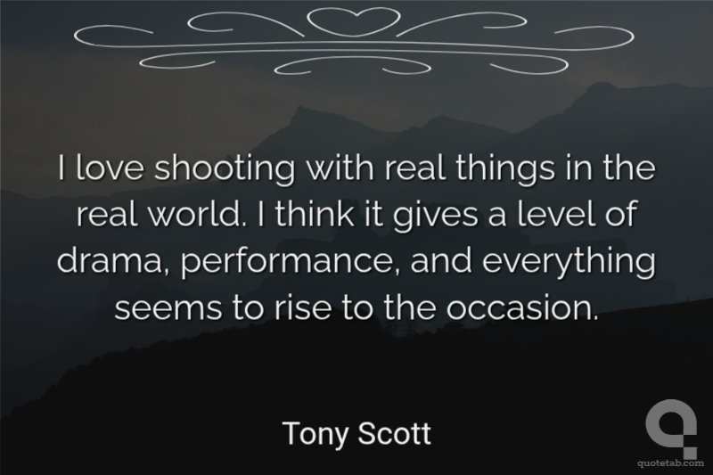 I love shooting with real things in the real world. I think it gives a level of drama, performance, and everything seems to rise to the occasion.