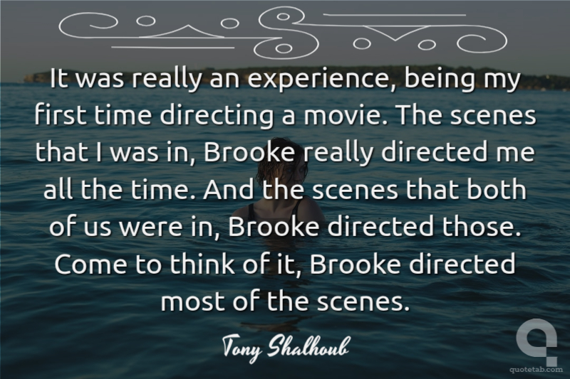 It was really an experience, being my first time directing a movie. The scenes that I was in, Brooke really directed me all the time. And the scenes that both of us were in, Brooke directed those. Come to think of it, Brooke directed most of the scenes.