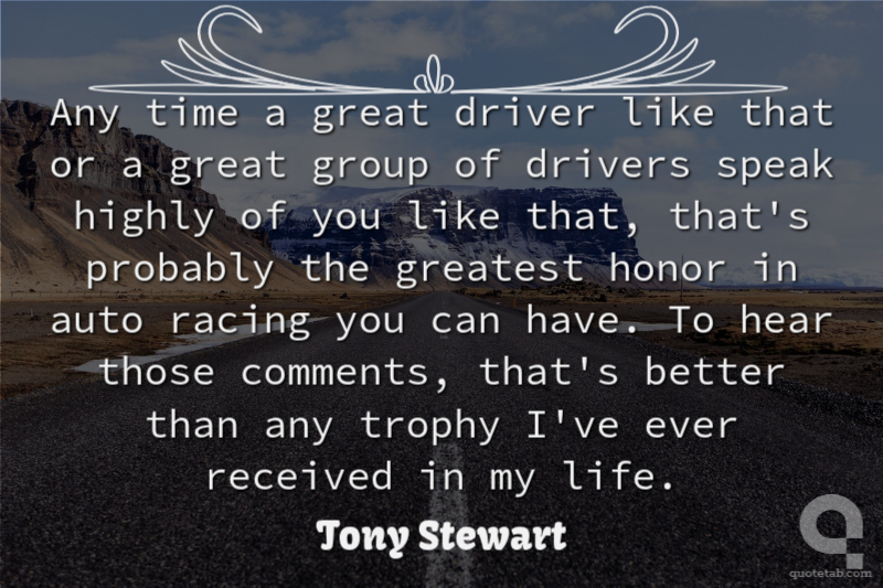 Any time a great driver like that or a great group of drivers speak highly of you like that, that's probably the greatest honor in auto racing you can have. To hear those comments, that's better than any trophy I've ever received in my life.