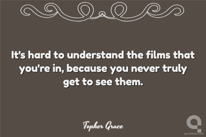 It's hard to understand the films that you're in, because you never truly get to see them.