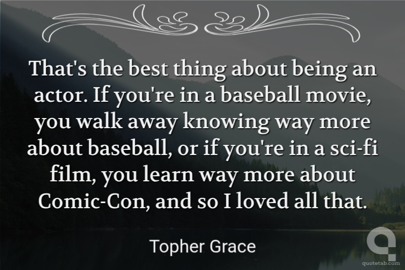 That's the best thing about being an actor. If you're in a baseball movie, you walk away knowing way more about baseball, or if you're in a sci-fi film, you learn way more about Comic-Con, and so I loved all that.