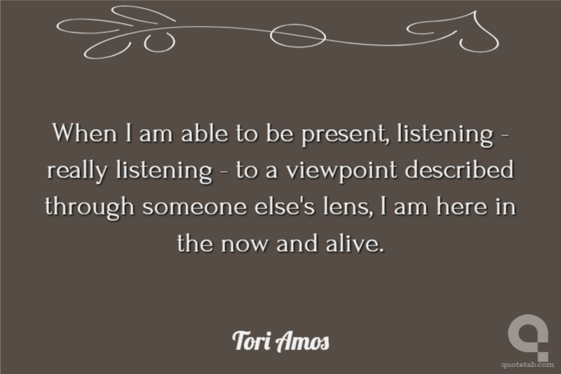 When I am able to be present, listening - really listening - to a viewpoint described through someone else's lens, I am here in the now and alive.