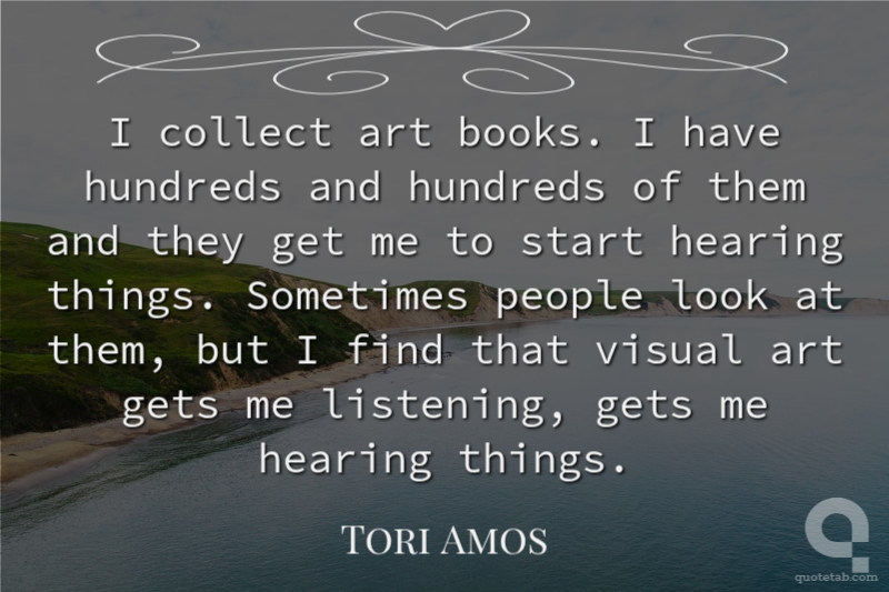 I collect art books. I have hundreds and hundreds of them and they get me to start hearing things. Sometimes people look at them, but I find that visual art gets me listening, gets me hearing things.