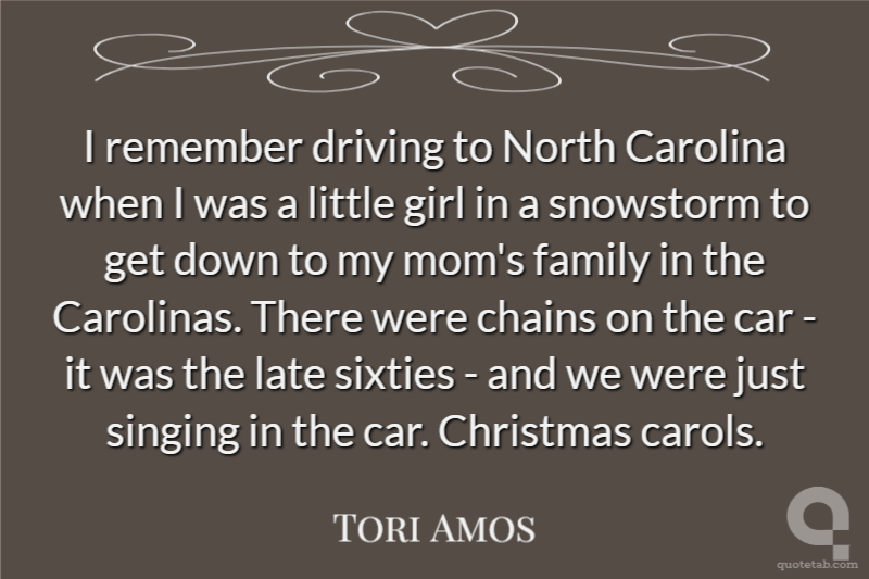 I remember driving to North Carolina when I was a little girl in a snowstorm to get down to my mom's family in the Carolinas. There were chains on the car - it was the late sixties - and we were just singing in the car. Christmas carols.