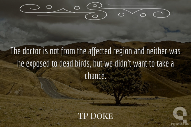 The doctor is not from the affected region and neither was he exposed to dead birds, but we didn't want to take a chance.