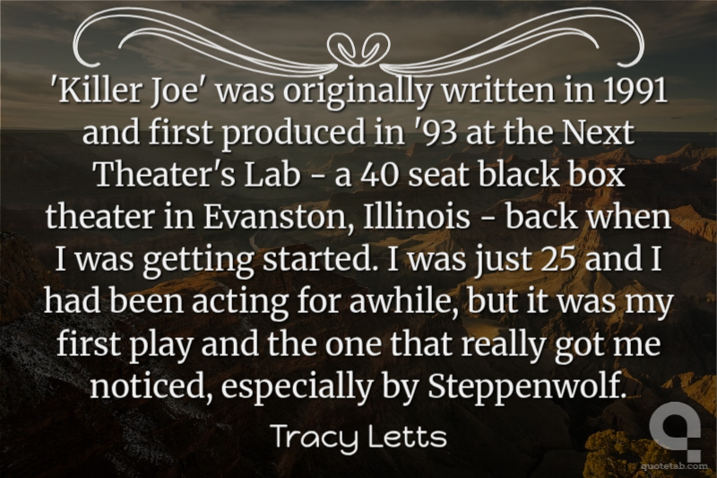 'Killer Joe' was originally written in 1991 and first produced in '93 at the Next Theater's Lab - a 40 seat black box theater in Evanston, Illinois - back when I was getting started. I was just 25 and I had been acting for awhile, but it was my first play and the one that really got me noticed, especially by Steppenwolf.