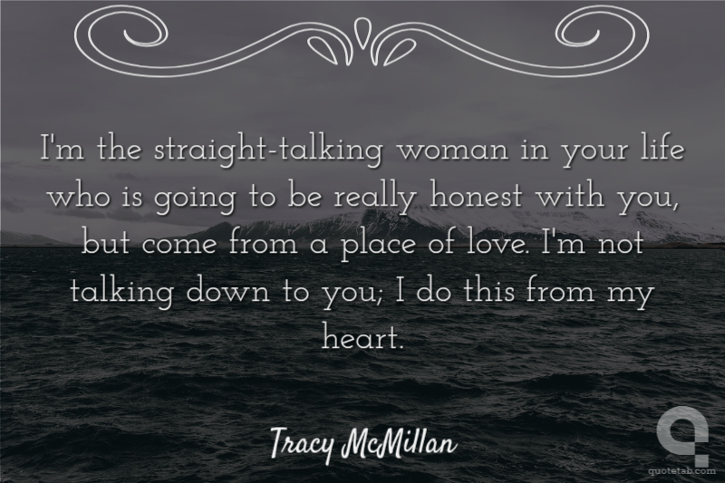 I'm the straight-talking woman in your life who is going to be really honest with you, but come from a place of love. I'm not talking down to you; I do this from my heart.