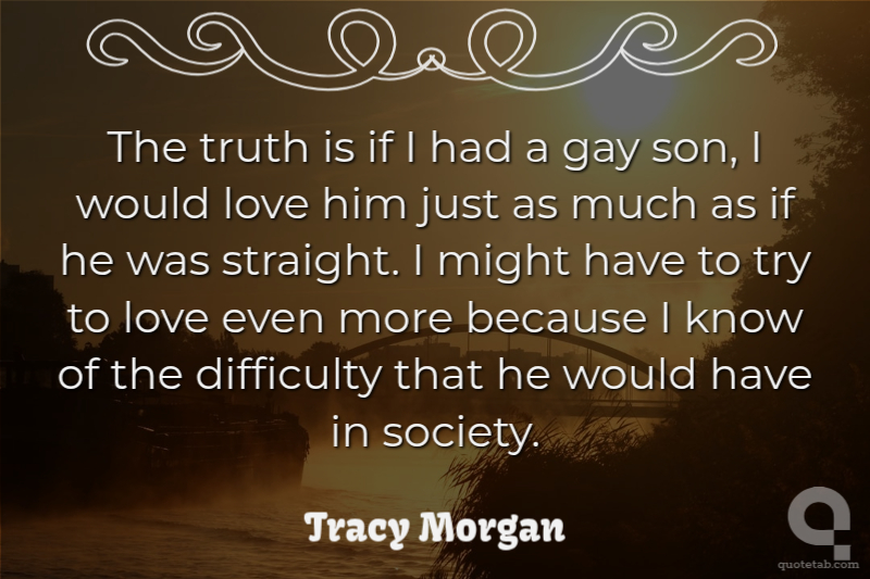 The truth is if I had a gay son, I would love him just as much as if he was straight. I might have to try to love even more because I know of the difficulty that he would have in society.