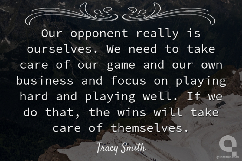 Our opponent really is ourselves. We need to take care of our game and our own business and focus on playing hard and playing well. If we do that, the wins will take care of themselves.