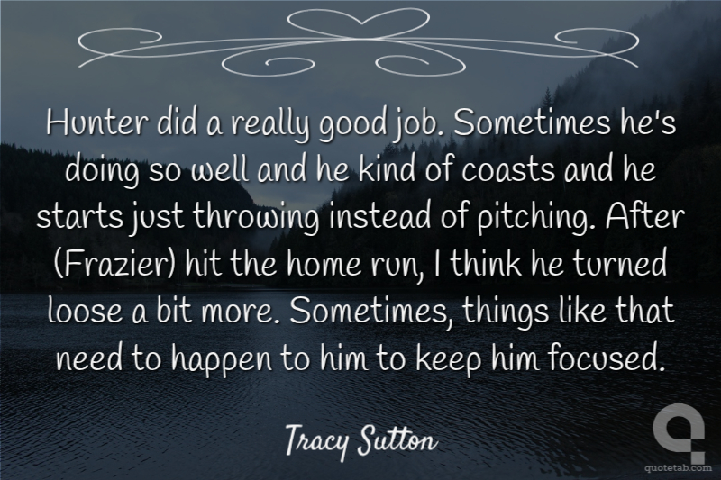 Hunter did a really good job. Sometimes he's doing so well and he kind of coasts and he starts just throwing instead of pitching. After (Frazier) hit the home run, I think he turned loose a bit more. Sometimes, things like that need to happen to him to keep him focused.