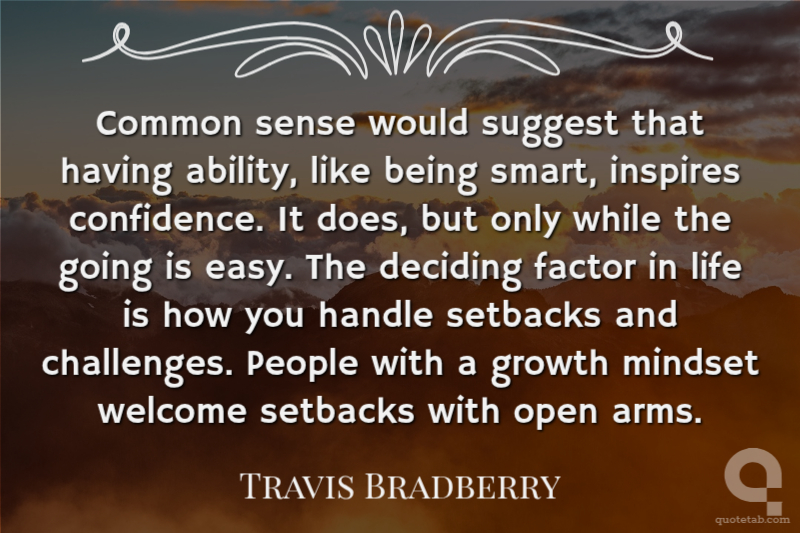 Common sense would suggest that having ability, like being smart, inspires confidence. It does, but only while the going is easy. The deciding factor in life is how you handle setbacks and challenges. People with a growth mindset welcome setbacks with open arms.