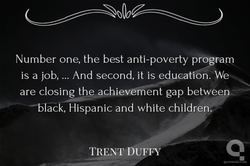Number one, the best anti-poverty program is a job, ... And second, it is education. We are closing the achievement gap between black, Hispanic and white children.