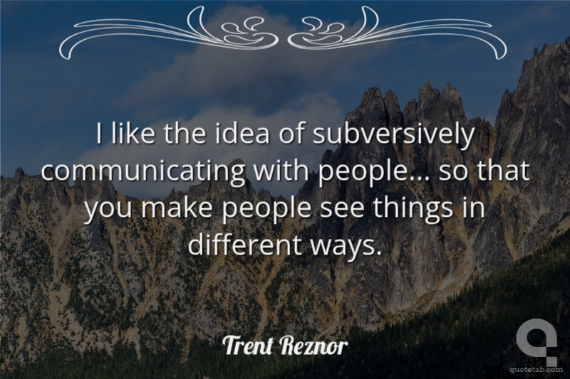 I like the idea of subversively communicating with people... so that you make people see things in different ways.
