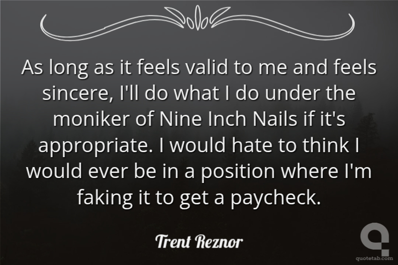As long as it feels valid to me and feels sincere, I'll do what I do under the moniker of Nine Inch Nails if it's appropriate. I would hate to think I would ever be in a position where I'm faking it to get a paycheck.