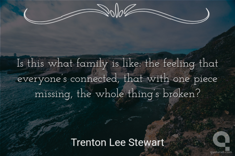 Is this what family is like: the feeling that everyone’s connected, that with one piece missing, the whole thing’s broken?