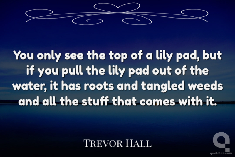 You only see the top of a lily pad, but if you pull the lily pad out of the water, it has roots and tangled weeds and all the stuff that comes with it.