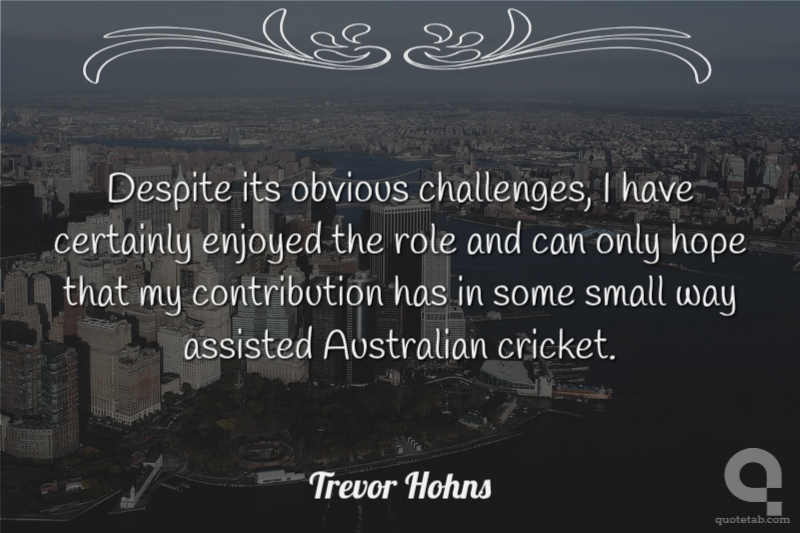 Despite its obvious challenges, I have certainly enjoyed the role and can only hope that my contribution has in some small way assisted Australian cricket.