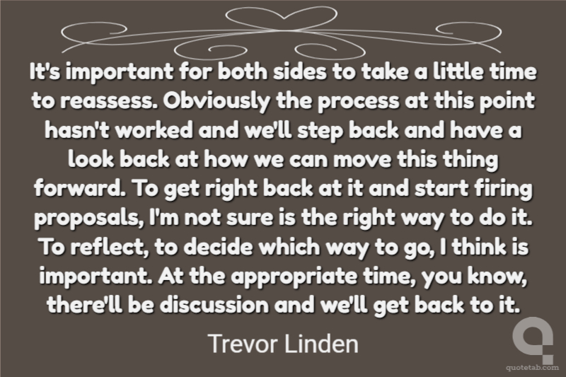 It's important for both sides to take a little time to reassess. Obviously the process at this point hasn't worked and we'll step back and have a look back at how we can move this thing forward. To get right back at it and start firing proposals, I'm not sure is the right way to do it. To reflect, to decide which way to go, I think is important. At the appropriate time, you know, there'll be discussion and we'll get back to it.