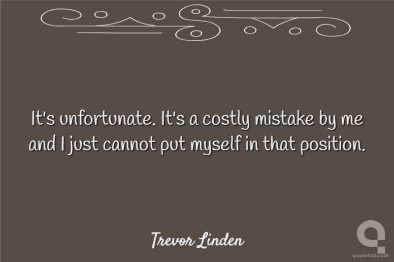 It's unfortunate. It's a costly mistake by me and I just cannot put myself in that position.