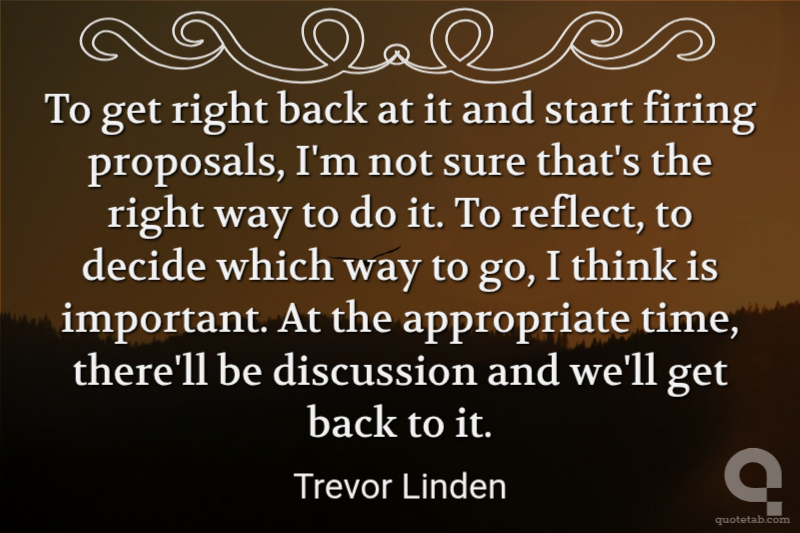 To get right back at it and start firing proposals, I'm not sure that's the right way to do it. To reflect, to decide which way to go, I think is important. At the appropriate time, there'll be discussion and we'll get back to it.
