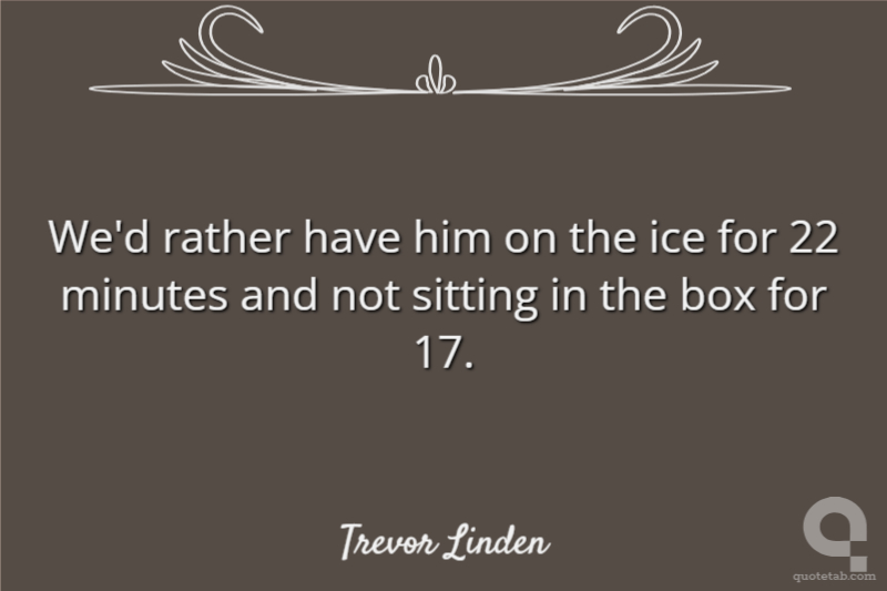 We'd rather have him on the ice for 22 minutes and not sitting in the box for 17.