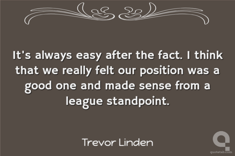 It's always easy after the fact. I think that we really felt our position was a good one and made sense from a league standpoint.