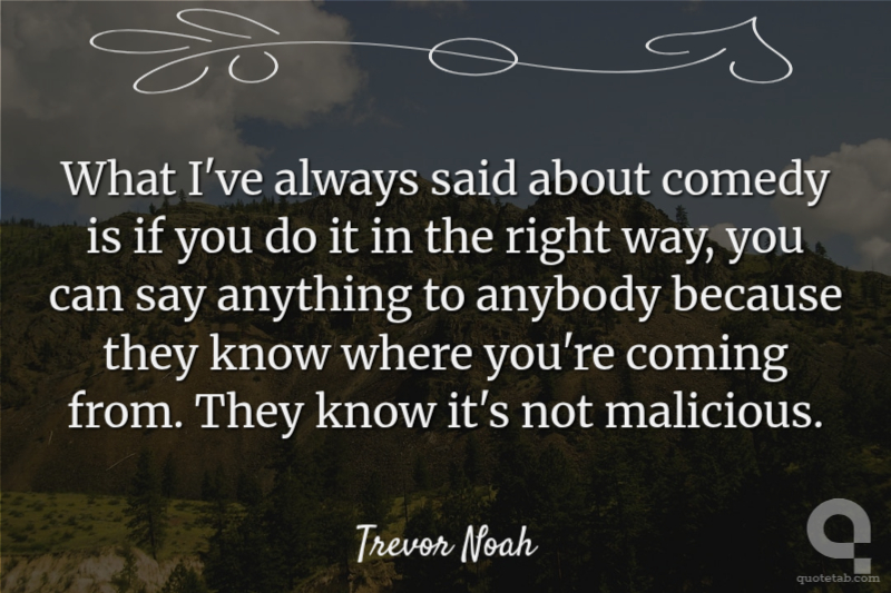 What I've always said about comedy is if you do it in the right way, you can say anything to anybody because they know where you're coming from. They know it's not malicious.