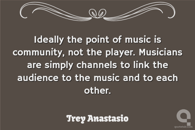 Ideally the point of music is community, not the player. Musicians are simply channels to link the audience to the music and to each other.