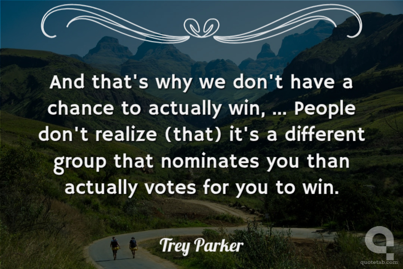 And that's why we don't have a chance to actually win, ... People don't realize (that) it's a different group that nominates you than actually votes for you to win.