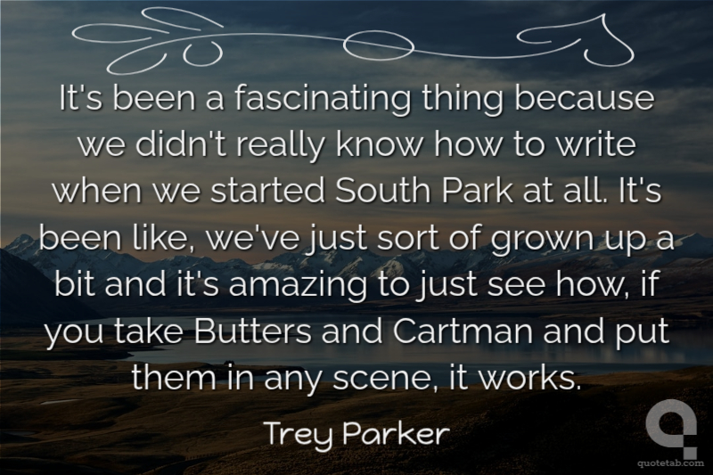It's been a fascinating thing because we didn't really know how to write when we started South Park at all. It's been like, we've just sort of grown up a bit and it's amazing to just see how, if you take Butters and Cartman and put them in any scene, it works.
