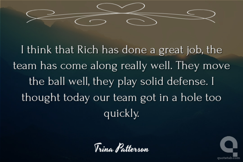 I think that Rich has done a great job, the team has come along really well. They move the ball well, they play solid defense. I thought today our team got in a hole too quickly.