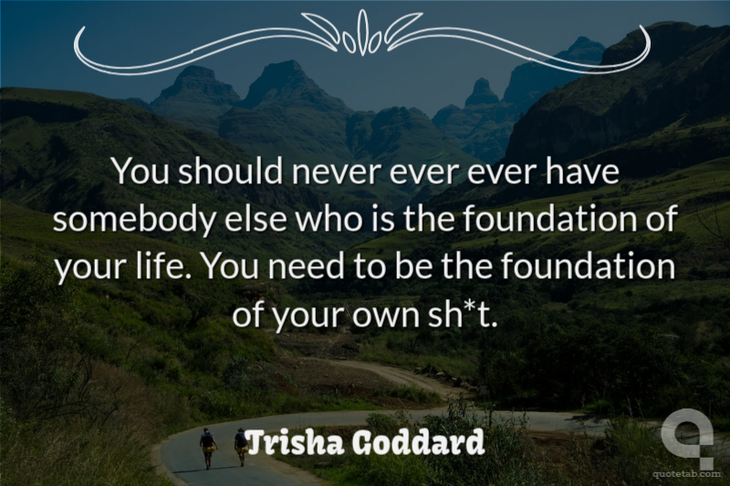 You should never ever ever have somebody else who is the foundation of your life. You need to be the foundation of your own sh*t.