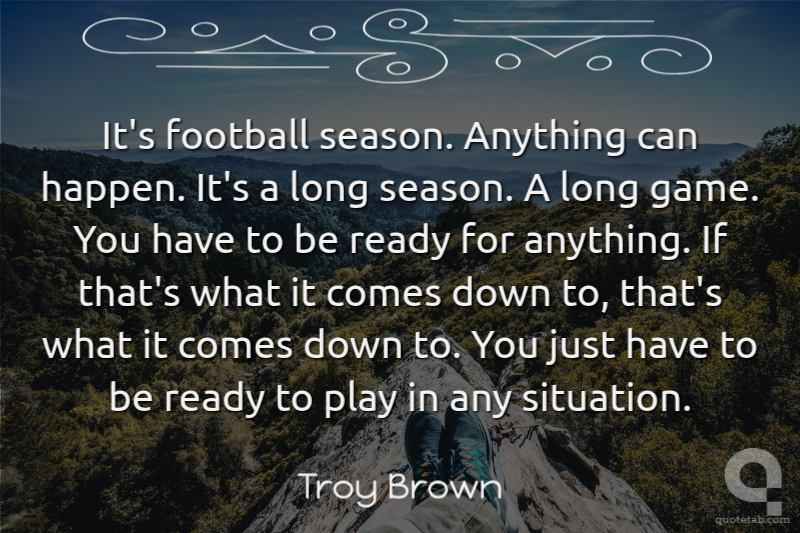 It's football season. Anything can happen. It's a long season. A long game. You have to be ready for anything. If that's what it comes down to, that's what it comes down to. You just have to be ready to play in any situation.