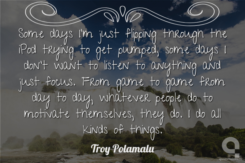 Some days I'm just flipping through the iPod trying to get pumped, some days I don't want to listen to anything and just focus. From game to game from day to day, whatever people do to motivate themselves, they do. I do all kinds of things.