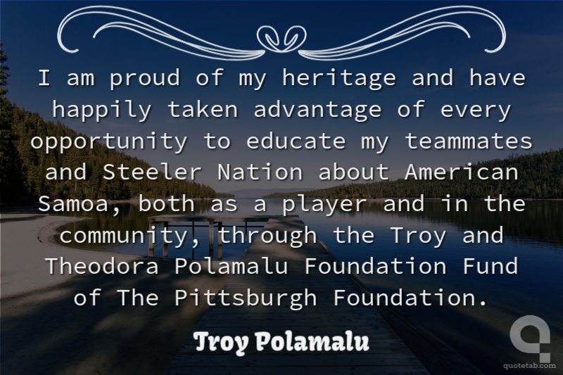 I am proud of my heritage and have happily taken advantage of every opportunity to educate my teammates and Steeler Nation about American Samoa, both as a player and in the community, through the Troy and Theodora Polamalu Foundation Fund of The Pittsburgh Foundation.