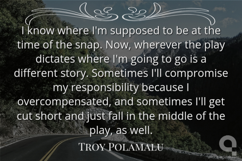I know where I'm supposed to be at the time of the snap. Now, wherever the play dictates where I'm going to go is a different story. Sometimes I'll compromise my responsibility because I overcompensated, and sometimes I'll get cut short and just fall in the middle of the play, as well.