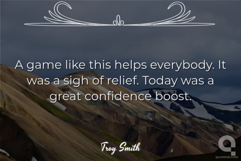 A game like this helps everybody. It was a sigh of relief. Today was a great confidence boost.