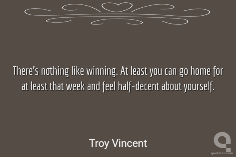 There's nothing like winning. At least you can go home for at least that week and feel half-decent about yourself.