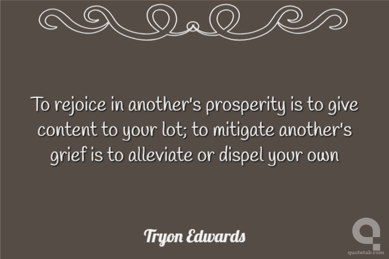 To rejoice in another's prosperity is to give content to your lot; to mitigate another's grief is to alleviate or dispel your own