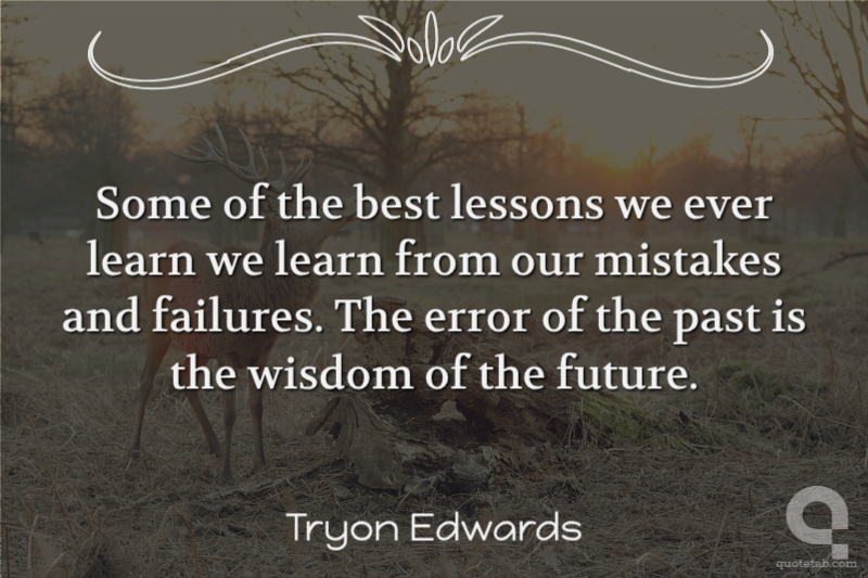 Some of the best lessons we ever learn we learn from our mistakes and failures. The error of the past is the wisdom of the future.