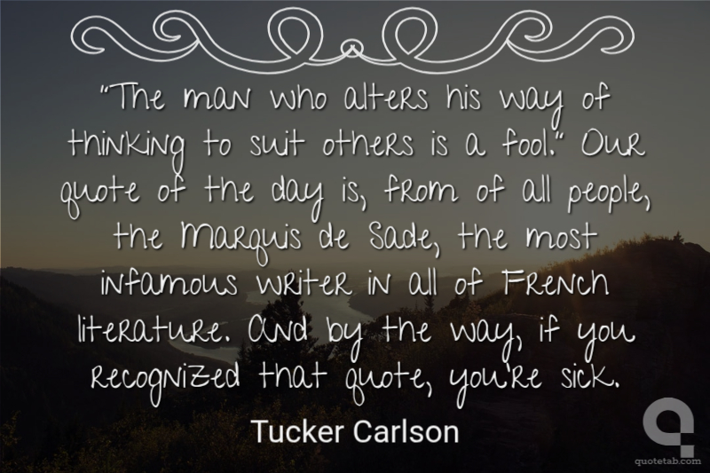 "The man who alters his way of thinking to suit others is a fool." Our quote of the day is, from of all people, the Marquis de Sade, the most infamous writer in all of French literature. And by the way, if you recognized that quote, you're sick.