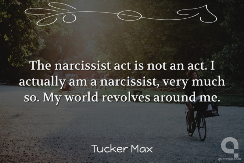 The narcissist act is not an act. I actually am a narcissist, very much so. My world revolves around me.