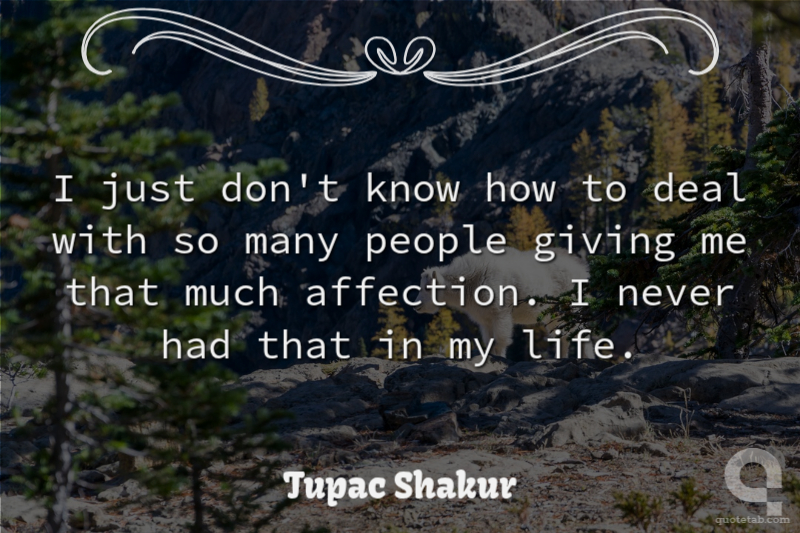 I just don't know how to deal with so many people giving me that much affection. I never had that in my life.