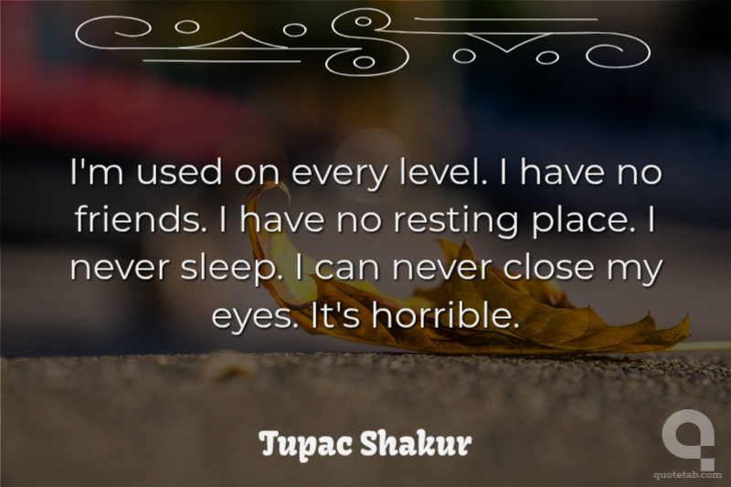 I'm used on every level. I have no friends. I have no resting place. I never sleep. I can never close my eyes. It's horrible.